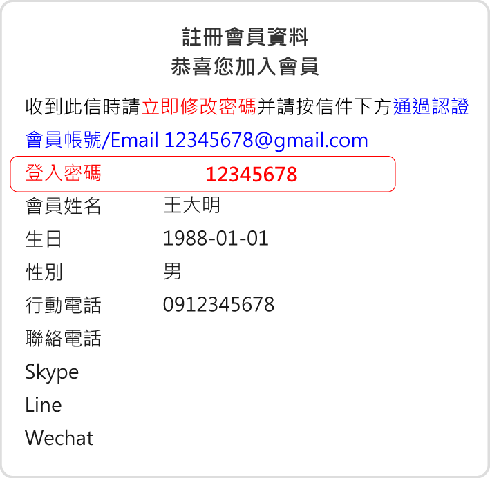 回到会员登入输入系统回传密码即可以登入