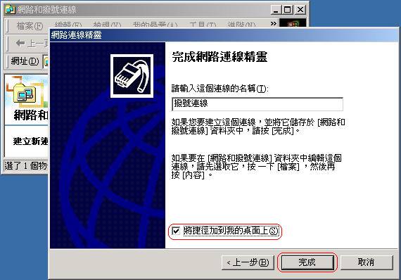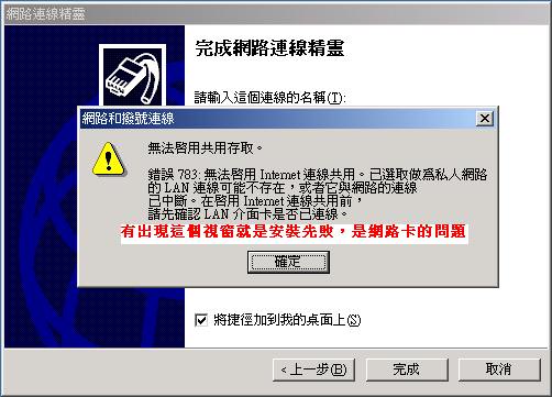 有出現下列這個視窗就是安裝失敗,是網路卡有問題,請檢查再重新設定。